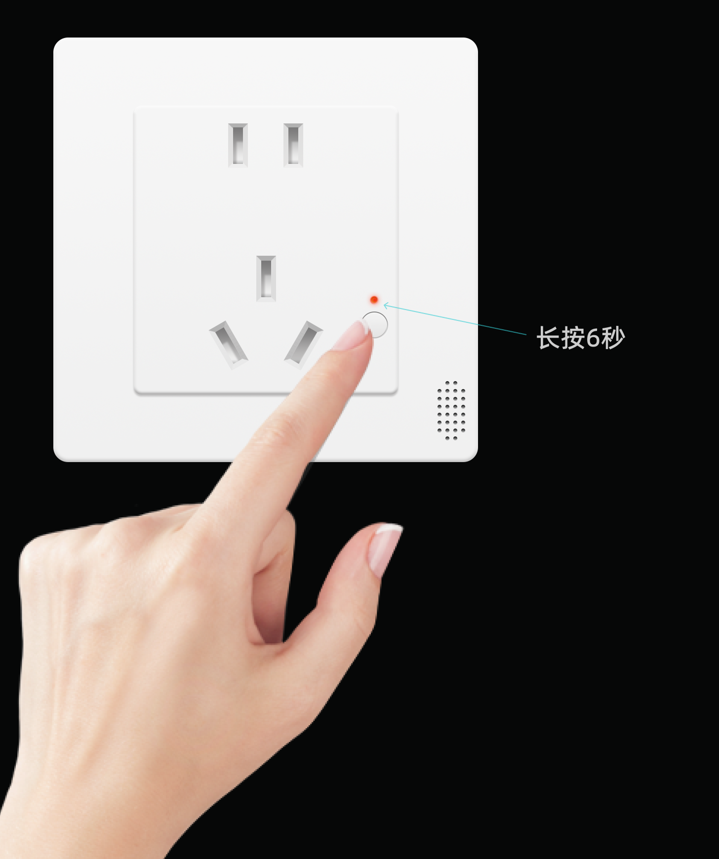 设备上电,长按开关按键6秒左右,红色指示灯闪烁两次后进入配网模式。