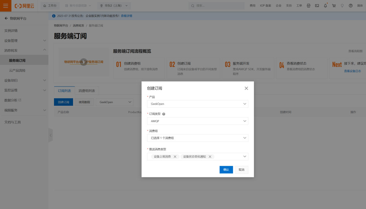 // 您的可用区ID。阿里云物联网平台公共实例使用 cn-shanghai